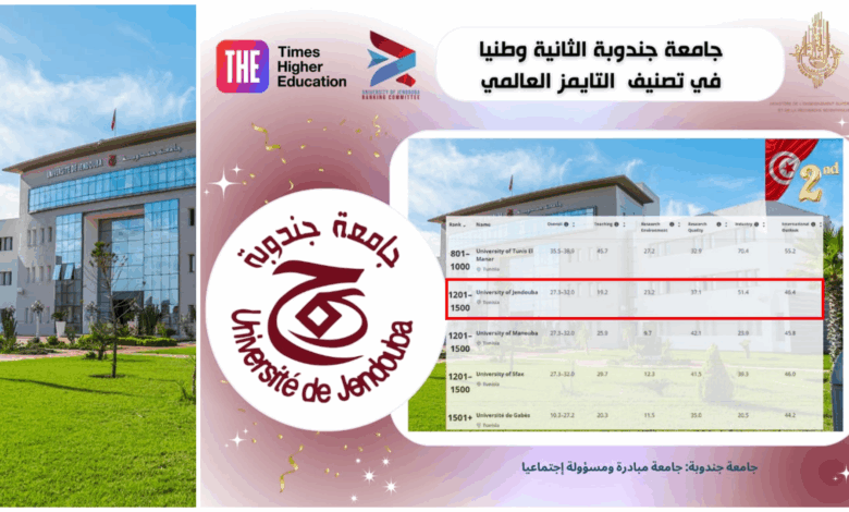 جامعة جندوبة تتألق عالميًا: المرتبة الثانية على المستوى الوطني في تصنيف “تايمز” للجامعات 2026