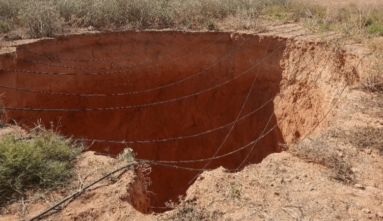 وأضاف الأستاذ أنّ الانزلاق سجّل في موقع يُعرف باسم “أم القضاض” على مساحة كبيرة، بعمق يُناهز 25 متراً وقطر يقارب 8 أمتار، مبيّنًا أنّ مثل هذه الظواهر ترتبط عادة بالمناطق الغنية بالمياه الجوفية.