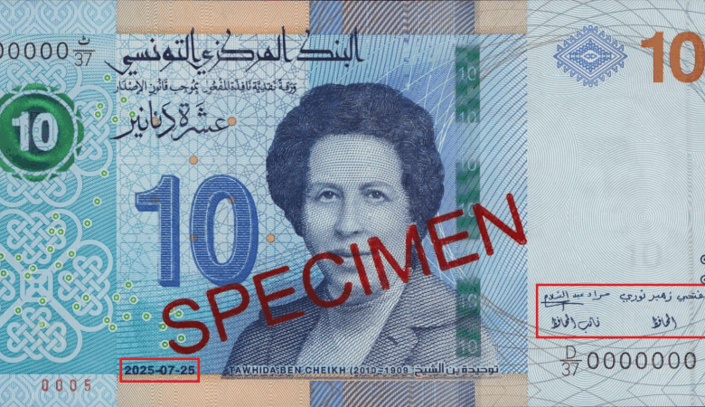 أعلن البنك المركزي التونسي عن طرح ورقة نقدية جديدة من فئة عشرة دنانير (صنف 2020) للتداول بداية من 17 أكتوبر 2025.