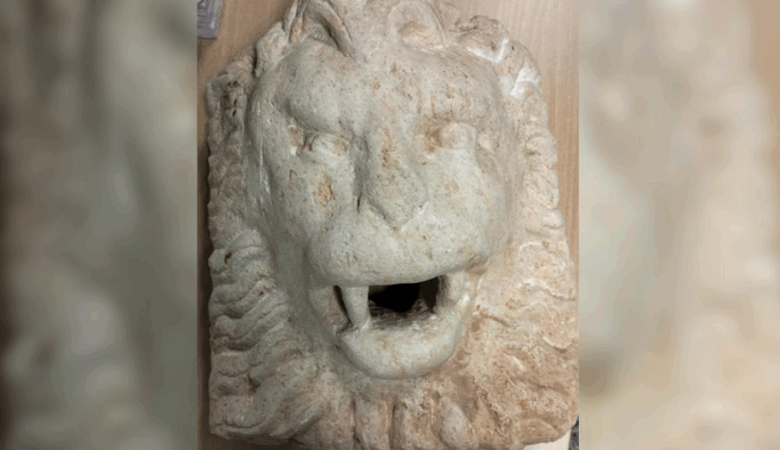 🔹 القطعة المضبوطة عبارة عن منحوتة صخرية لرأس أسد كانت بحوزة مسافر يحمل جنسية أجنبية، وكان ينوي تهريبها ضمن أمتعته.
