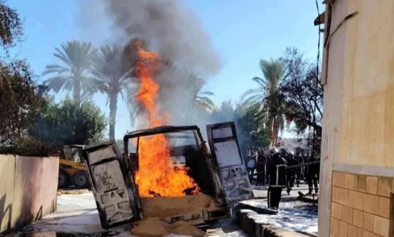 اندلع حريق بسيارة محمّلة بالبنزين في منطقة الجواولة بمدينة شنني، ما أدى إلى احتراق السيارة بالكامل وامتداد النيران إلى محل بيع المحروقات الذي كانت ستُفرغ فيه الحمولة.