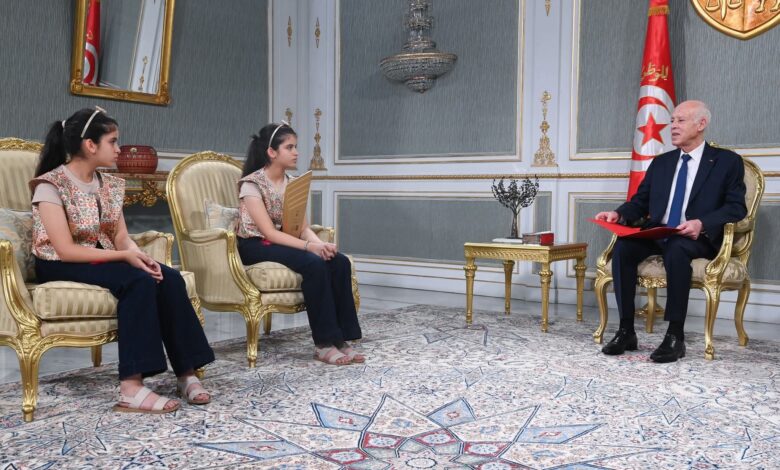 رئيس الجمهورية يستقبل التلميذتين بيسان وبيلسان كوكة بعد فوزهما بتحدي القراءة العربي
