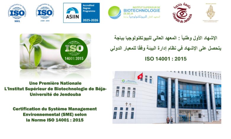 المعهد العالي للبيوتكنولوجيا بباجة أول مؤسسة جامعية تتحصّل على إشهاد ISO 14001