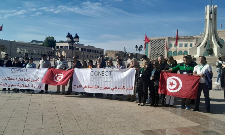 في إطار حرصه على الدفاع عن مصالح مهنيي القطاع وتنظيمه، نفّذ المجمع المهني لمُسدي الخدمات الديوانية بمنظمة الأعراف كُونَكت، اليوم الخميس 06 نوفمبر 2025، وقفة احتجاجية أمام مقر وزارة المالية بالقصبة، للمطالبة بـنشر القائمة النهائية للمقبولين في مجال الوساطة الديوانية وتسوية وضعية الناشطين في القطاع.
