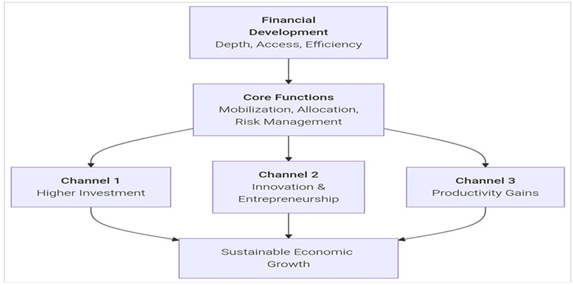 تؤكد الأدلة التجريبية وجود علاقة إيجابية بين التطور المالي ونمو الناتج المحلي الإجمالي. غير أن التحديات لا تزال قائمة، مثل التفاوت الجغرافي في الوصول إلى التمويل، والإقصاء المالي في المناطق الريفية، إضافة إلى هشاشة بعض البنوك نتيجة تراكم القروض المتعثرة.
