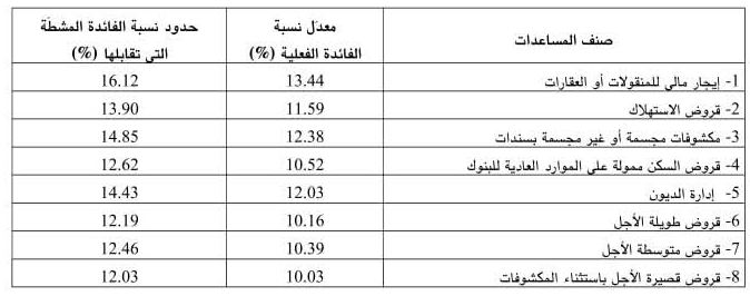 ونصّ القرار على نشر معدّل نسبة الفائدة الفعلية للسداسية الثانية من سنة 2025، والمتعلّقة بكل صنف من أصناف المساعدات البنكية، إلى جانب تحديد حدود نسبة الفائدة المشطّة المقابلة لها بعنوان السداسية الأولى من سنة 2026، وذلك طبقًا للجدول الملحق بالقرار.