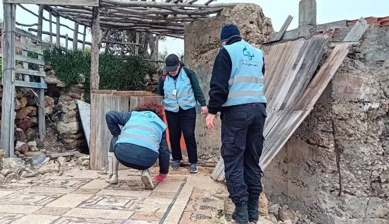 وأوضح المعهد أنّ فريقًا علميًا مختصًا في الفسيفساء، وبالتنسيق مع منطقة الحرس البحري ببنزرت، تحوّل إلى الشريط الساحلي بمنطقة رأس إنجلة لمعاينة وتوثيق ورفع ما تم كشفه من لوحات فسيفسائية ومعالم أثرية، وذلك في إطار مواصلة أعمال المسح والتوثيق عقب العاصفة الأخيرة.