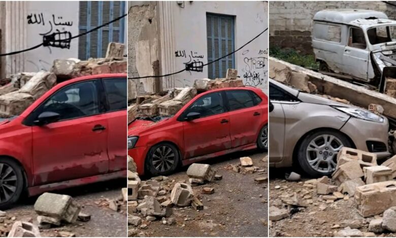 العاصمة: سقوط جدار يُفزع المارة ويخلّف أضرارًا مادية